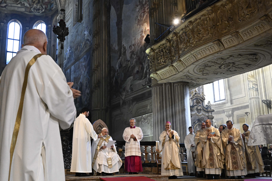 «Il nostro Re – ha aggiunto – apre le braccia a tutti dal trono della croce e non punta il dito contro nessuno, e “a brasa aduerte” ti dice che niente di te gli è estraneo, che vuole abbracciarti, rialzarti e salvarti così come sei, con la tua storia, le tue miserie, i tuoi peccati».