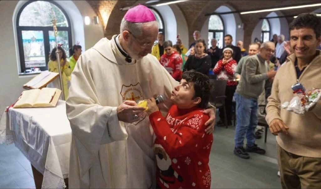 VOGHERA – Il 19 dicembre, in una giornata illuminata dal calore della condivisione, la casa guanelliana “La Pallavicina” di Campoferro, alle porte di Voghera, ha vissuto una giornata di profonda spiritualità e gioia. L’occasione è stata la ricorrenza della nascita di san Luigi Guanella, un anniversario che quest’anno ha assunto un significato ancora più alto grazie alla visita straordinaria del vescovo Mons. Guido Marini. Il suo arrivo è stato accolto da un clima di autentica emozione. I ragazzi hanno mostrato grande entusiasmo nel partecipare alla Santa Messa da lui celebrata. Edoardo, uno degli ospiti della casa, ha colto subito l’essenza del- l’evento: «È stato bello averlo qui, ha parlato con noi molto umilmente». Un’impressione confermata anche da Roberto, che ha aggiunto: «È bravo, è stato molto simpatico con noi». Durante la celebrazione eucaristica, il vescovo si è rivolto ai presenti, lasciando un messaggio che è risuonato come un augurio speciale per le festività: «Pensate una casa in cui risuona la meraviglia per la nascita di Gesù, che è Dio con noi, per noi e in noi. Questo ho voluto trasmettervi oggi per aiutare tutti quanti noi a vivere bene questo Natale». Questo invito alla “meraviglia” ha trovato un momento di svolta interiore in Angela: «Conoscerlo è stato molto emozionante e mi ha resa felice. Mi ha fatto venire voglia di esserepiù praticante.» Marcella ha ricordato con orgoglio il suo servizio all’altare: «Il vescovo mi ha fatto i complimenti per come ho servito Messa», mentre Adana ha raccontato con commozione un momento di vicinanza fisica e spirituale: «Ha benedetto la mia croce, mi ha abbracciata e si è congratulato per come ho letto durante la celebrazione». Questi gesti — un abbraccio, una benedizione, un complimento per un compito svolto bene — raccontano come qualcosa di semplice possa avere un valore incredibilmente importante. Nel giorno del compleanno san Guanella, la sua eredità è apparsa più viva che mai, impressa nei sorrisi e nella gioia dei suoi “buoni figli”.